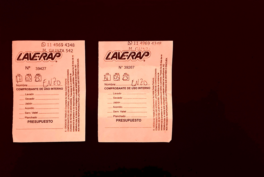 Me fui con la sensación de que me faltaba algo. Me faltó sentir ese cariño en la letra tosca del “Enzo” escrito por el señor de la lavandería. Llegué a mi casa con la hueca sensación de que había llevado mi ropa a desaparecer. No tenía ni ropa ni comprobante.